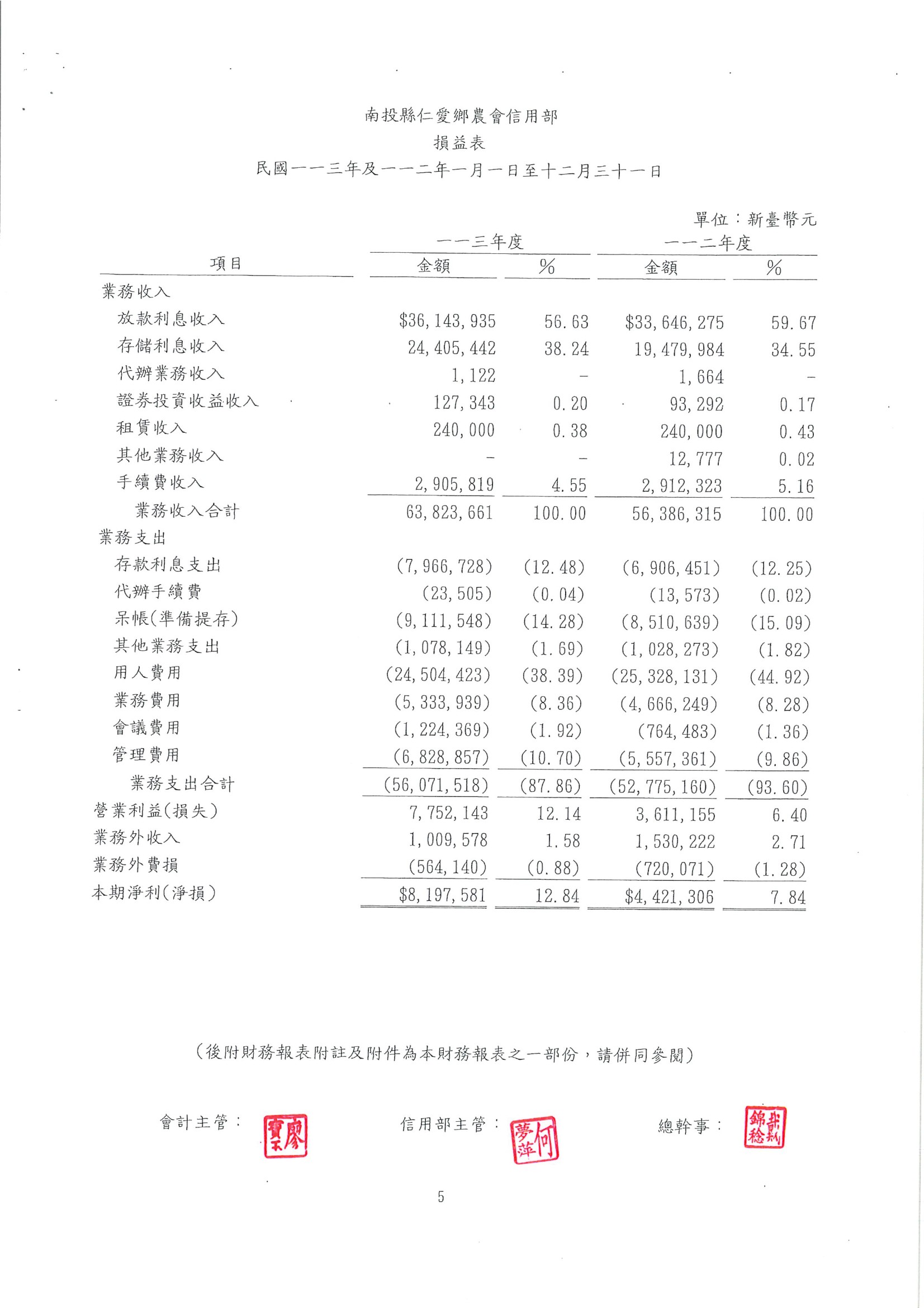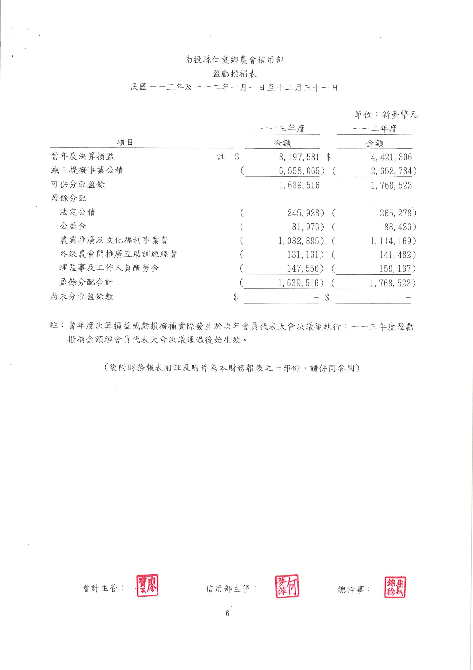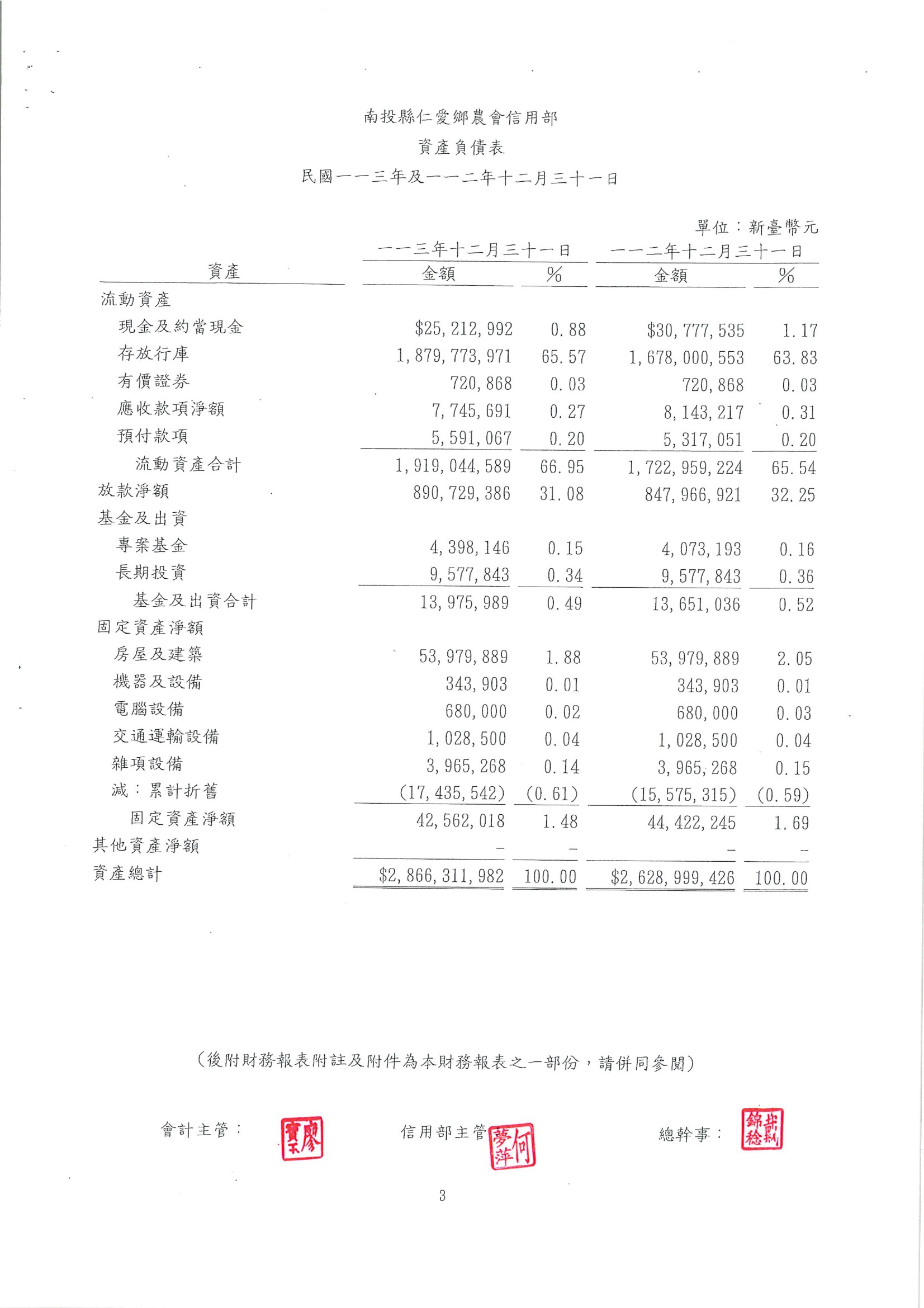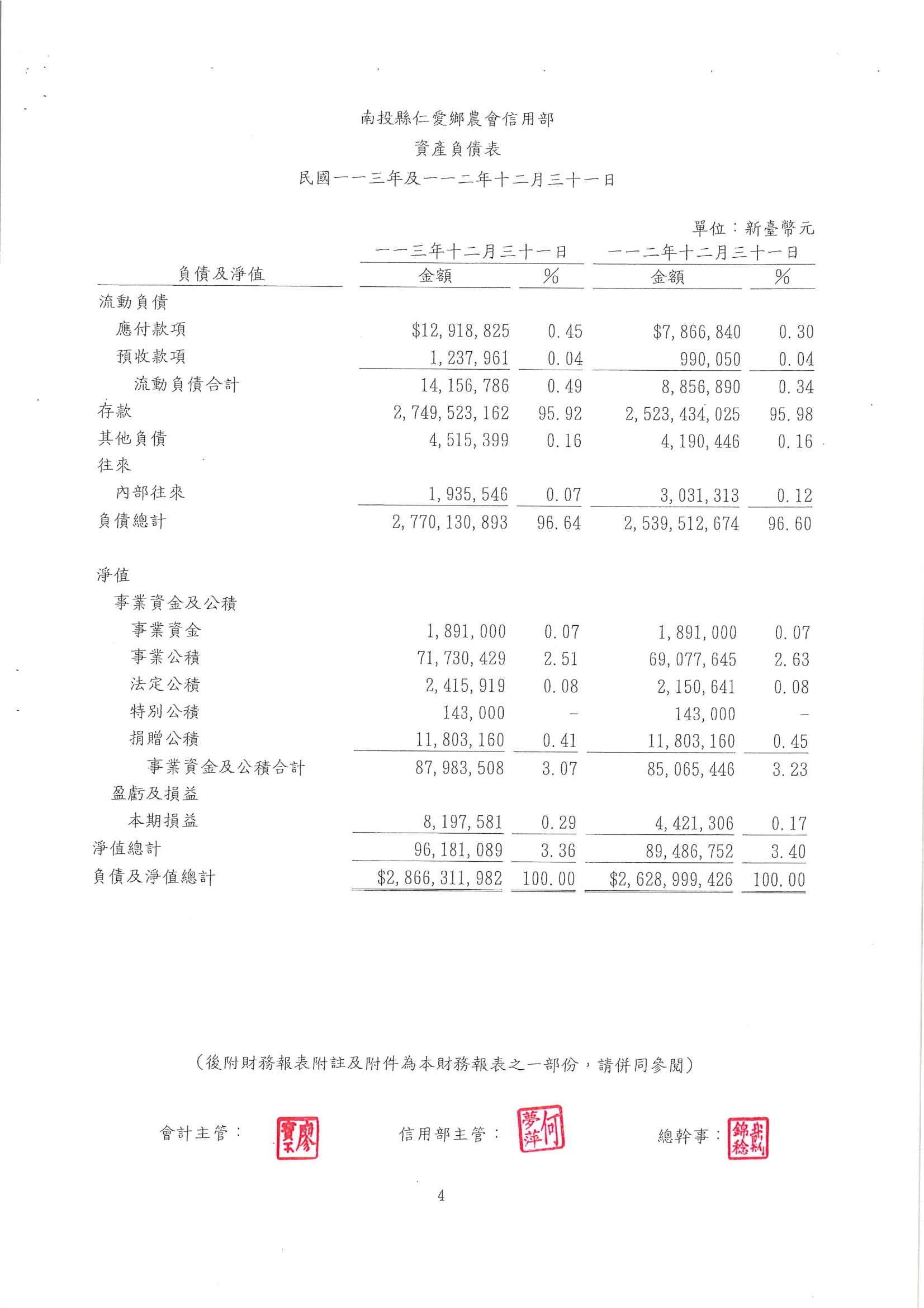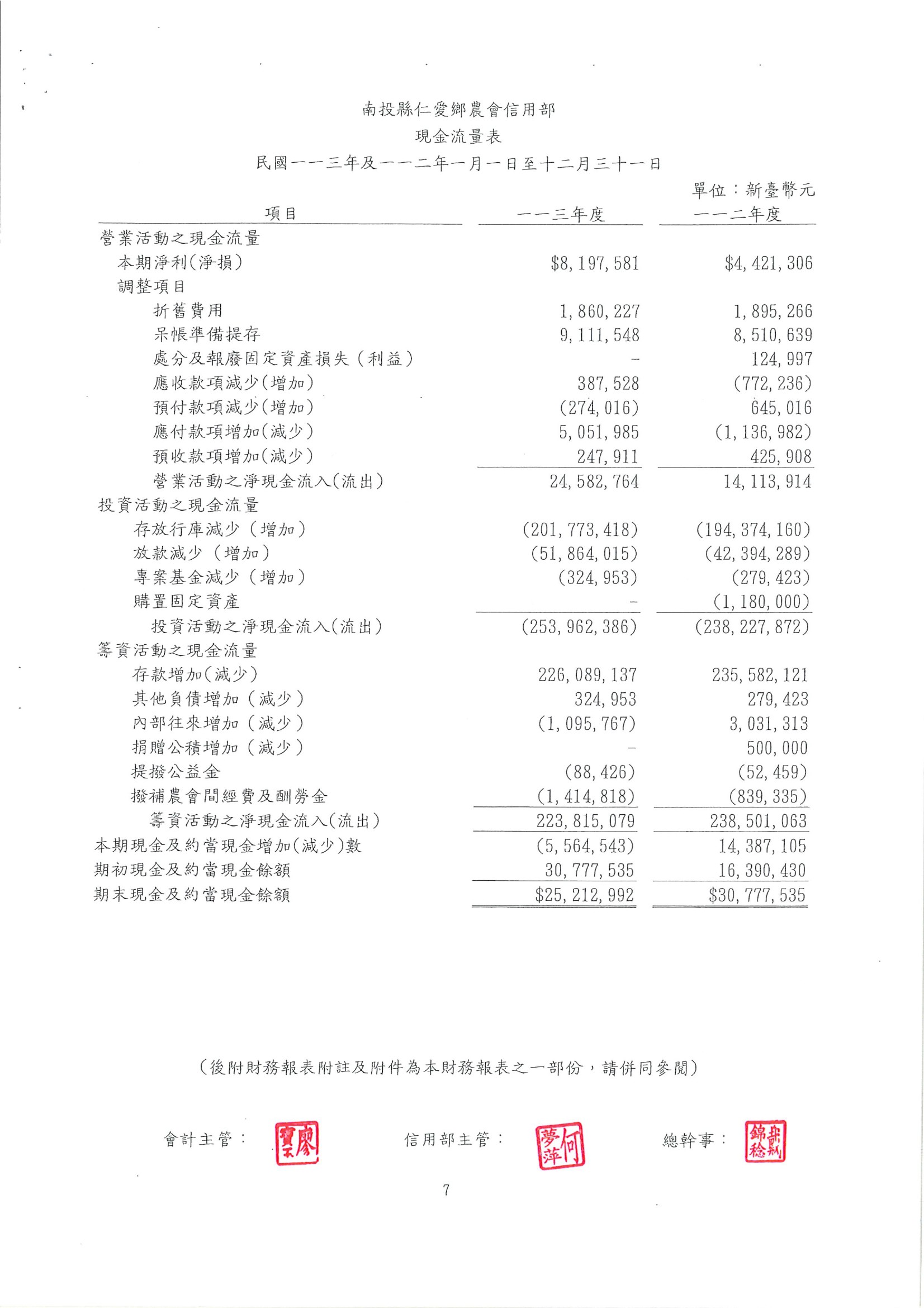 公告本會信用部113年度資產負債表、損益表、現金流量表、盈虧撥補表。