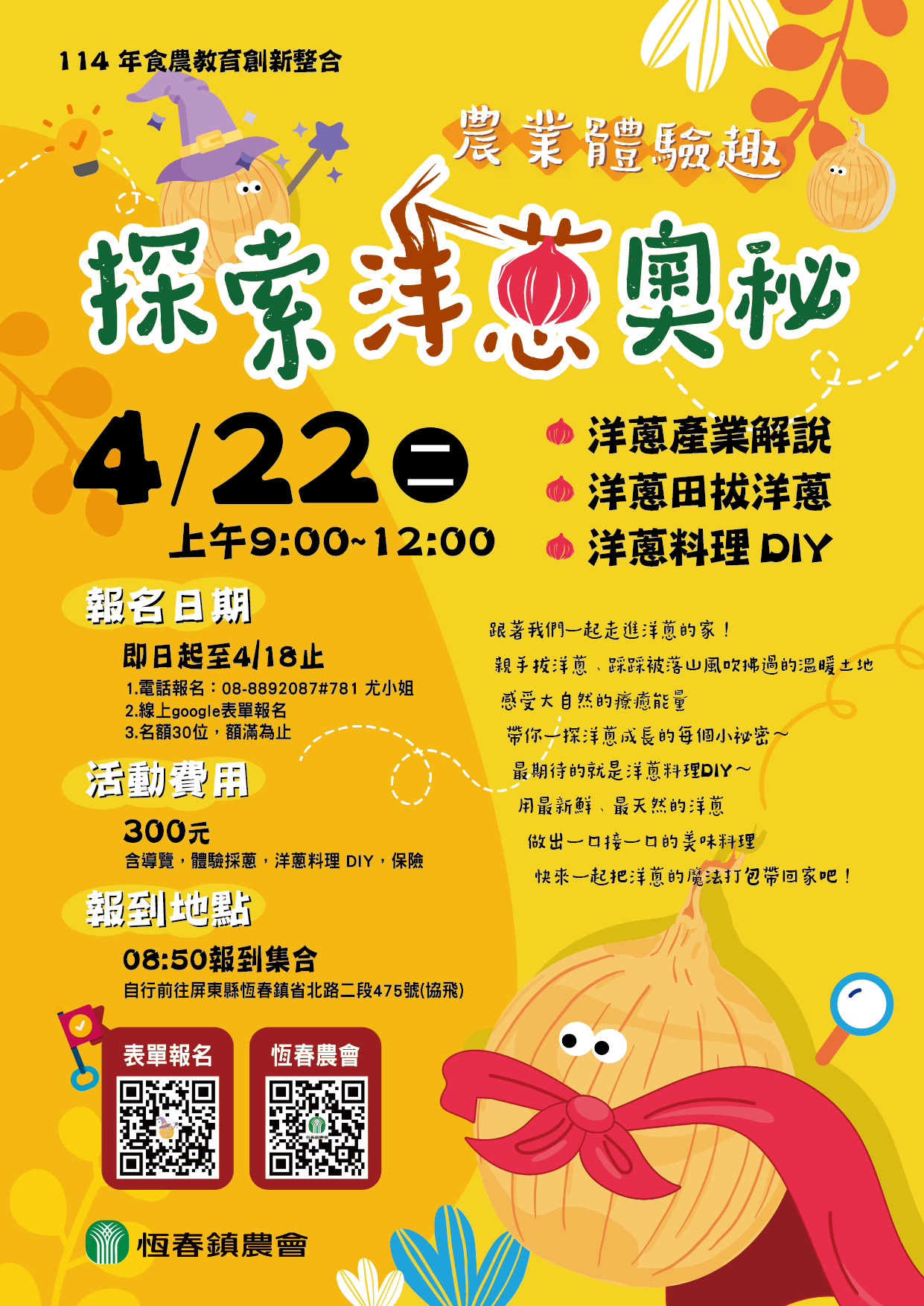 恆春鎮農會辦理「探索洋蔥奧秘,農業體驗趣」歡迎報名參加