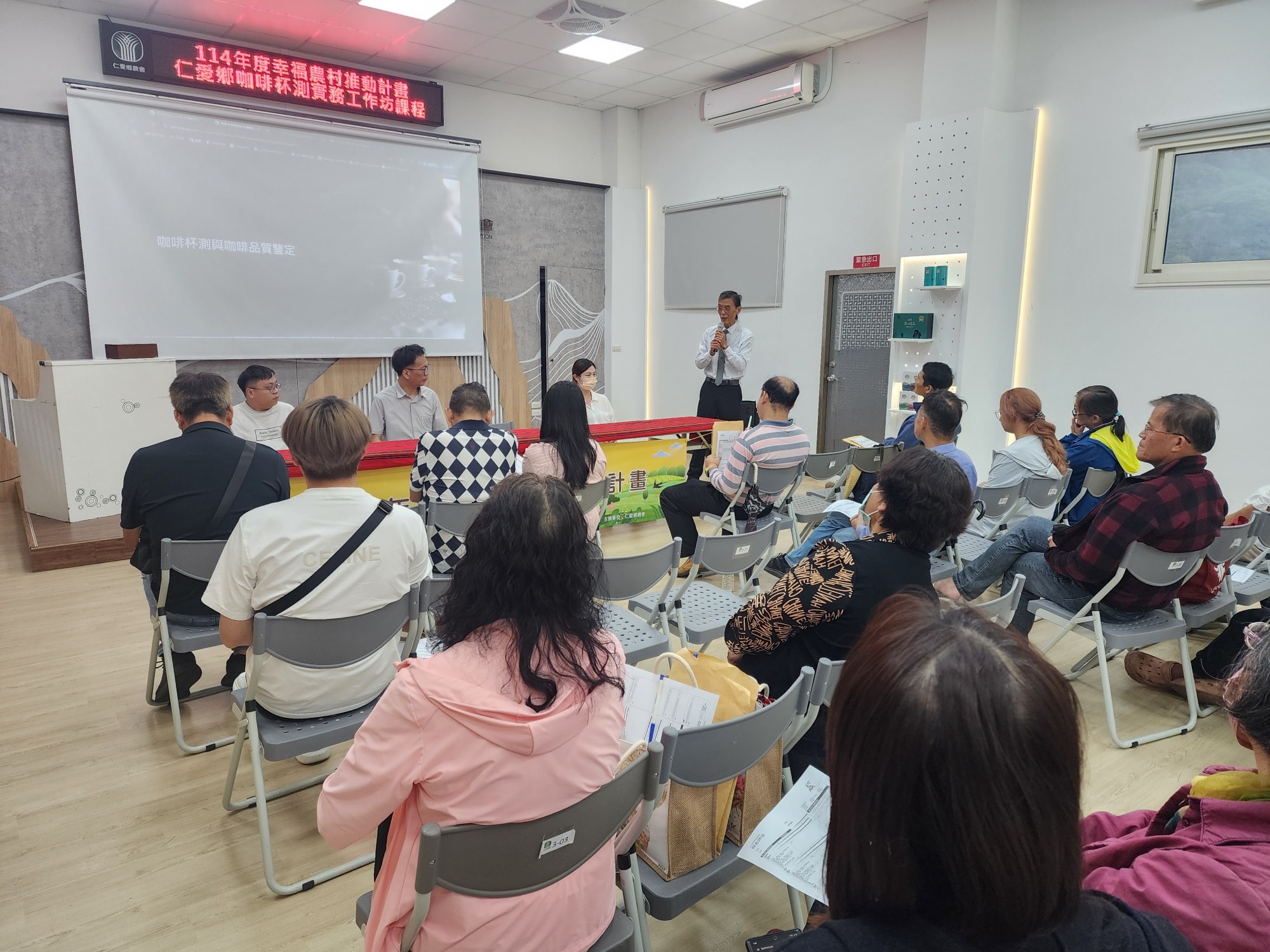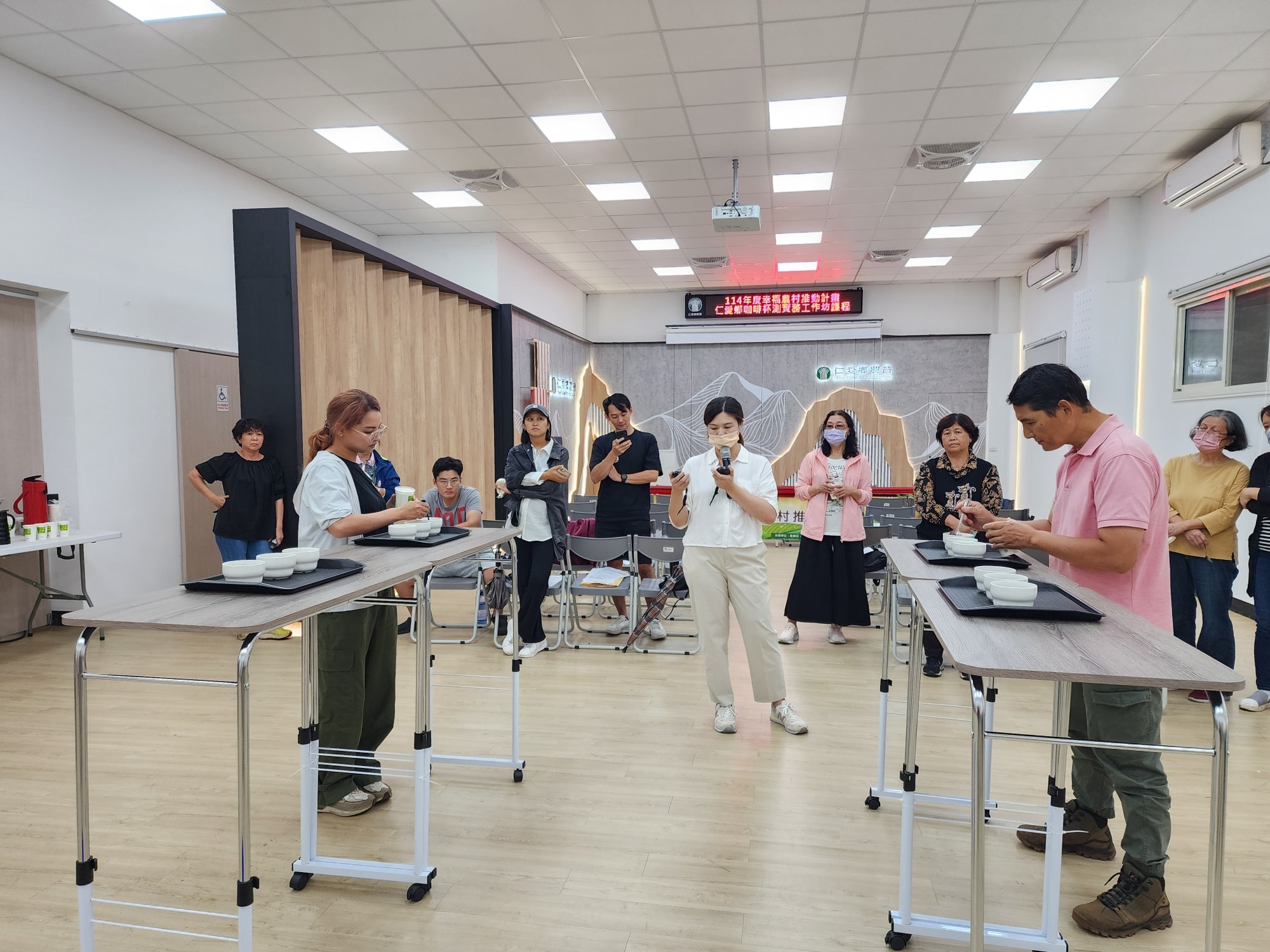 上午分享農產行銷、綠色保育案例與農機保養知識,下午則透過咖啡杯測實務課程,帶大家體驗仁愛咖啡的風味與三角杯測技巧!