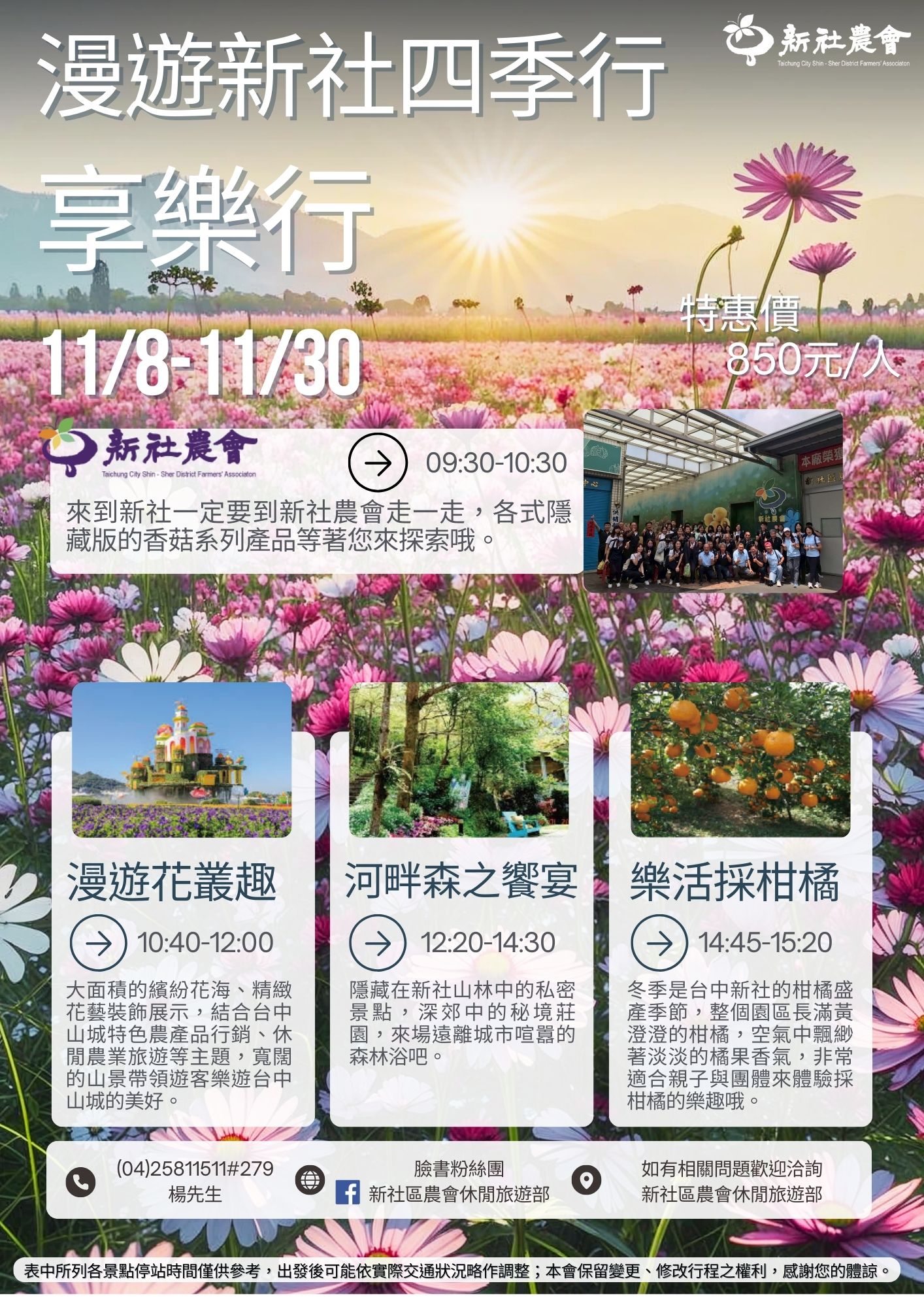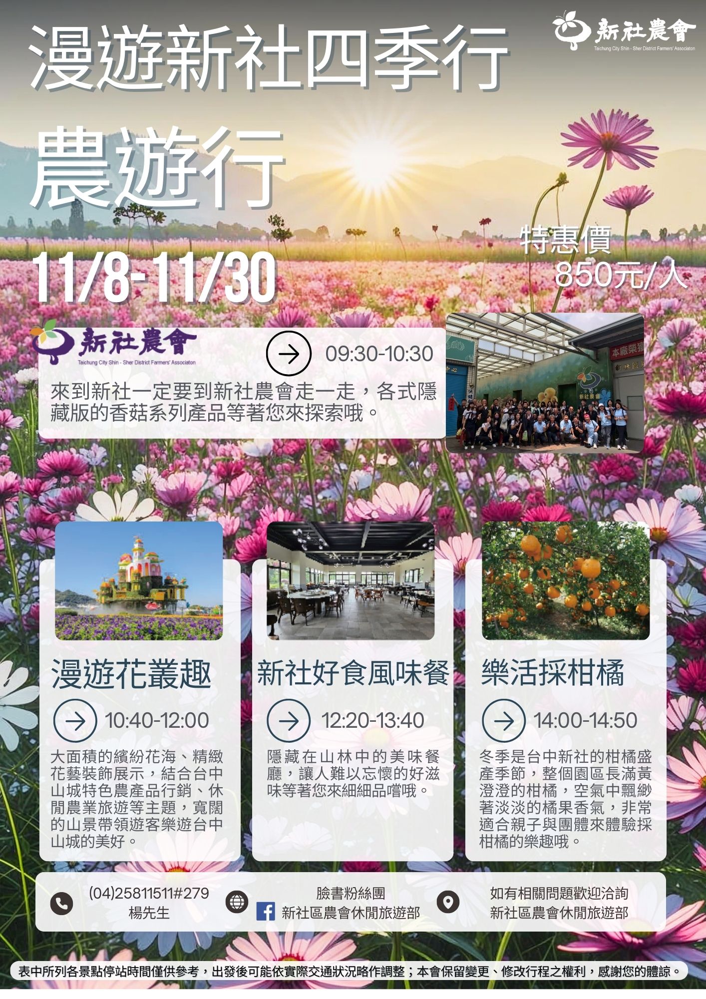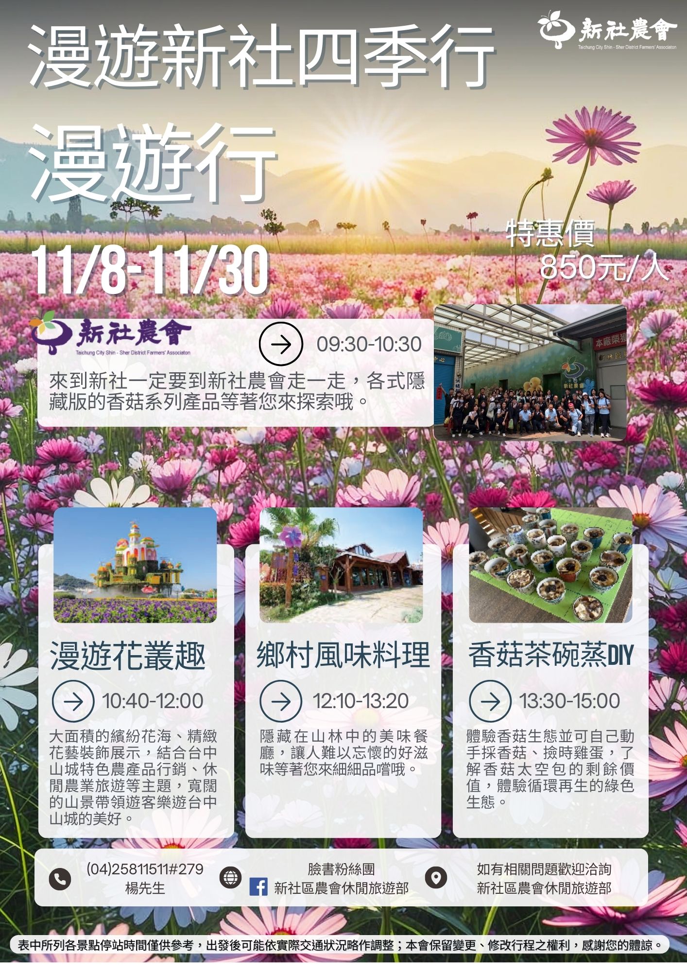 新社區農會辦理「漫遊新社四季行」歡迎報名參加
