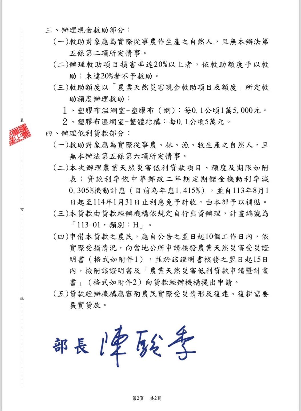 公告仁愛鄉辦理塑膠布溫網室-塑膠布(網)及整體結構113年康芮颱風農業天然災害現金救助及利率貸款地區