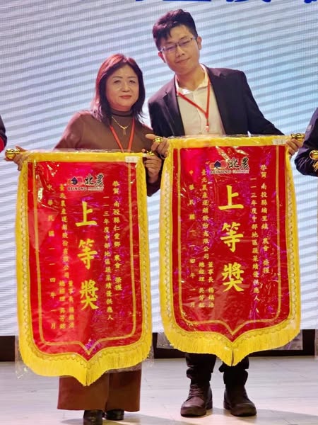 本會再次以卓越的成績,在各供應單位中脫穎而出,榮獲上等獎的殊榮,本會由供銷部洪淑美主任代表本會授獎,這項獎項不僅肯定了我們在農產品交易上的努力與成就,也展現仁愛鄉農產品的優良品質和競爭力。